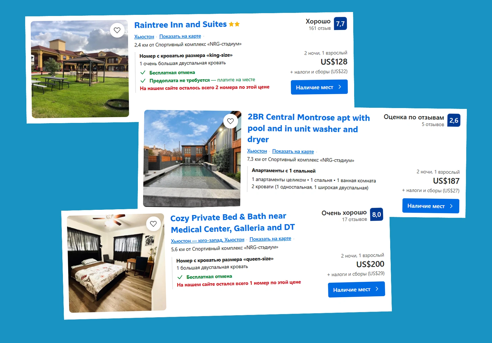 Во время матчей стоимость одного и того же предложения на разных платформах может различаться на 50–150 долларов за ночь, а это около 0,6–1,8 млн сумов. Перед оплатой стоит проверить несколько сервисов — разница часто перекрывает комиссии и налоги.