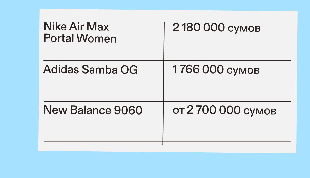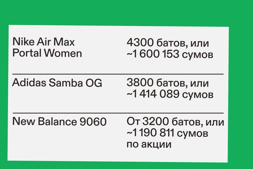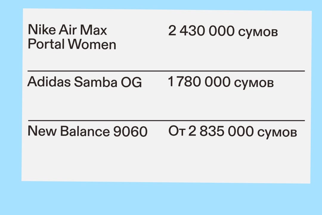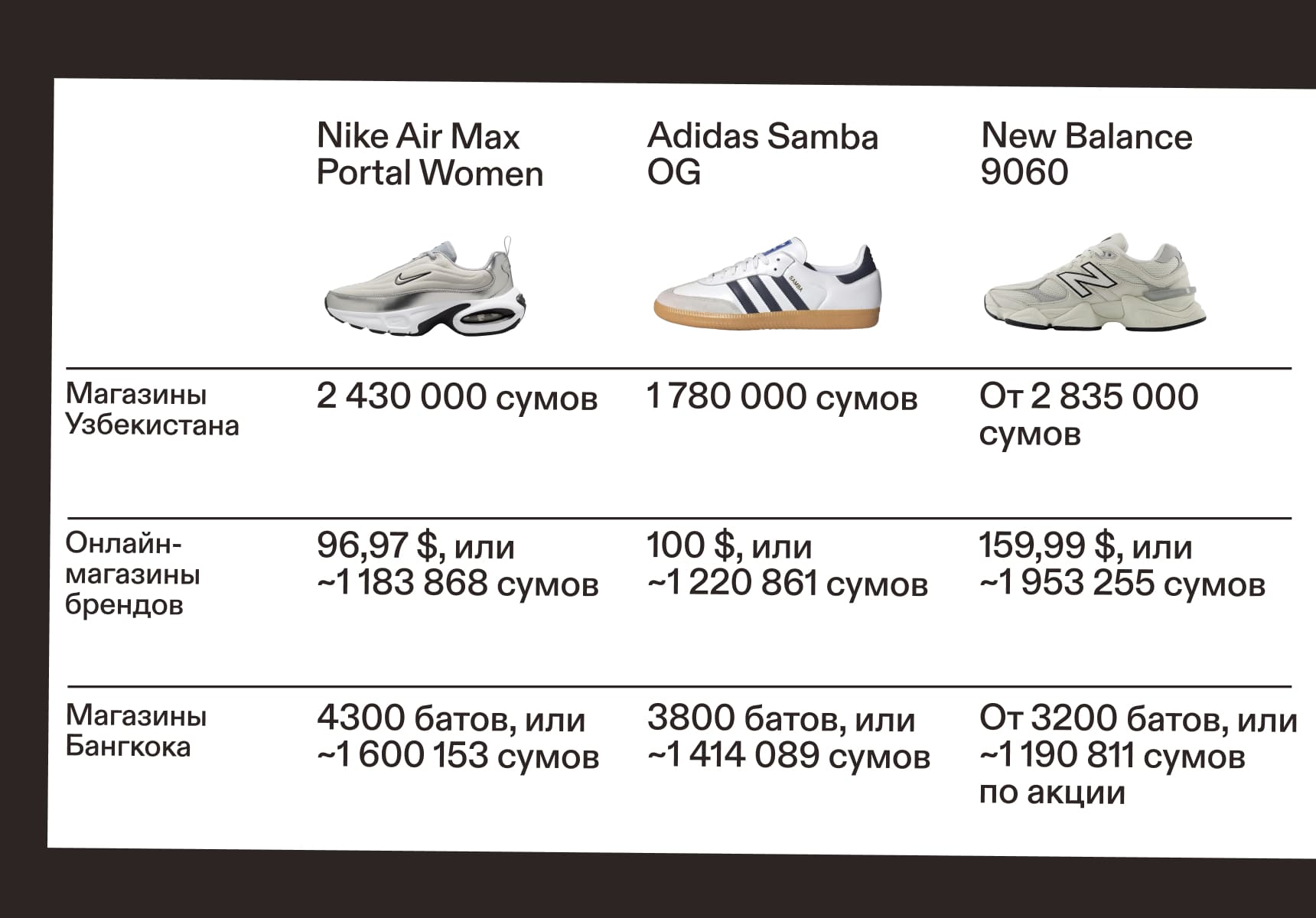 Цены на кроссовки в Узбекистане, на сайтах брендов и в ЮВА