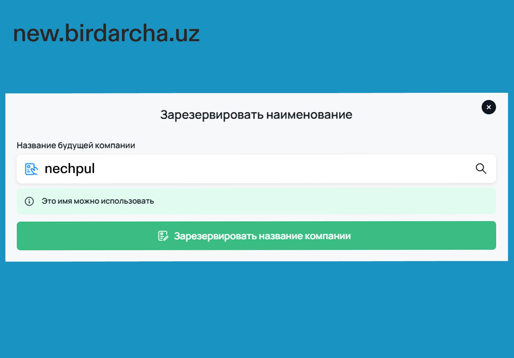 Shu portal orqali bo‘lajak YaTT nomini ham band qilib qo‘yish mumkin, lekin nom tanlashda Ma’muriy javobgarlik to‘g‘risidagi kodeksning 177-moddasi talablarini hisobga olish kerak. Bu mavjud savdo belgilarini himoya qilish uchun joriy qilingan. Xizmat bepul.