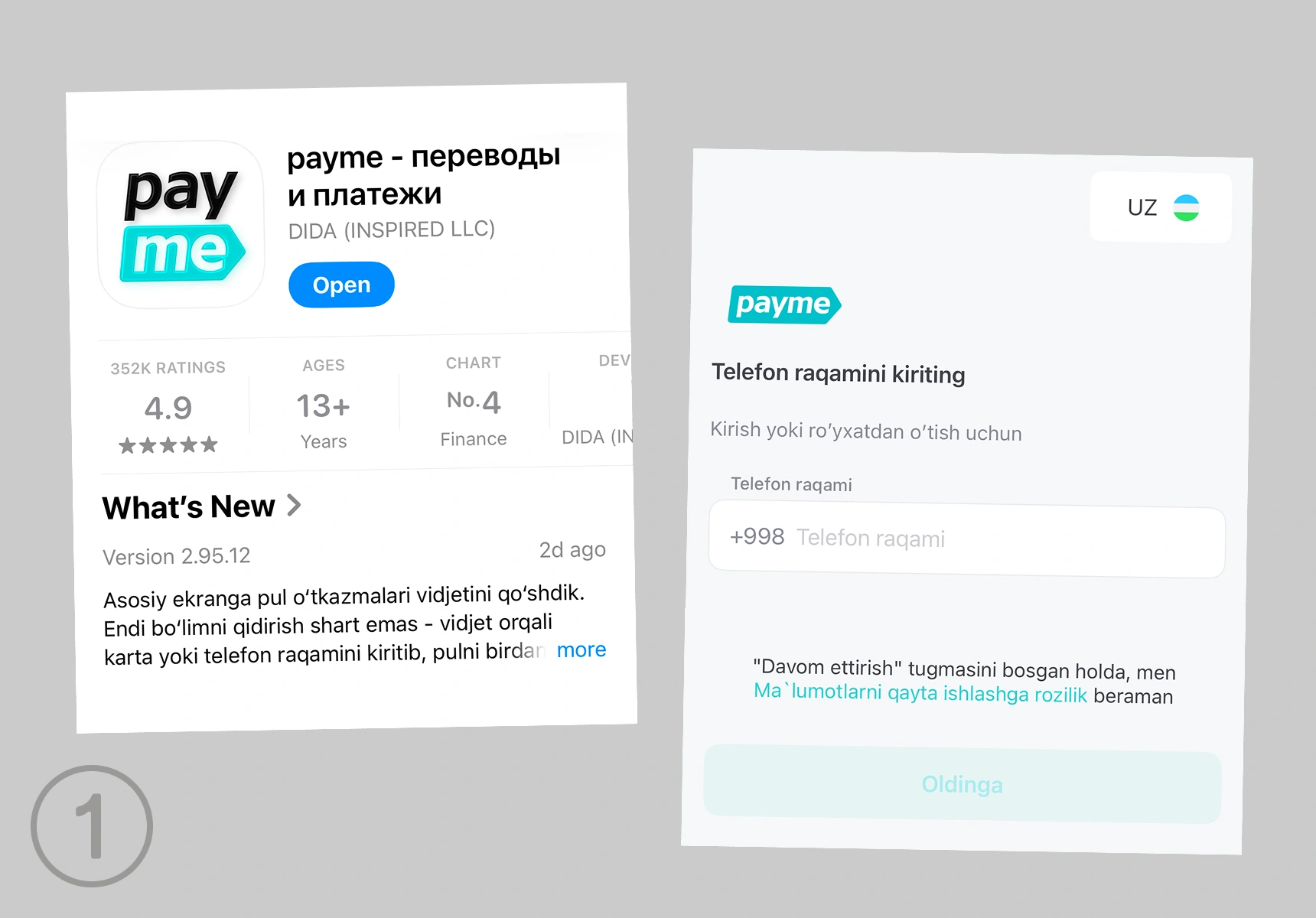 1-qadam. payme’ni yuklab oling va ro‘yxatdan o‘ting. Agar ilovadan allaqachon foydalansangiz, bu qadamni bajarmang.