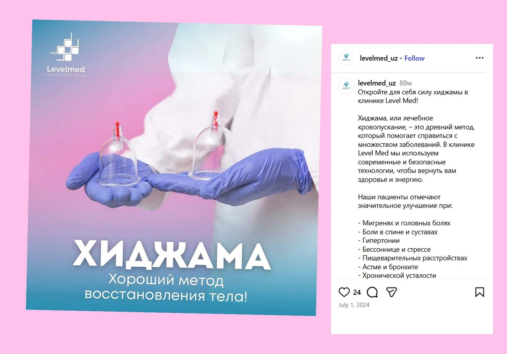 Qanchalik ishonchli? Ushbu usulning foydasi haqida ilmiy isbot yo‘q. Muolaja esa ancha xavfli — terida kesiklar, ko‘karishlar, shishlar, hatto chandiqlar ham qolishi mumkin. Ko‘p qon yo‘qotish va infeksiya tushib qolishi ham mumkin.
