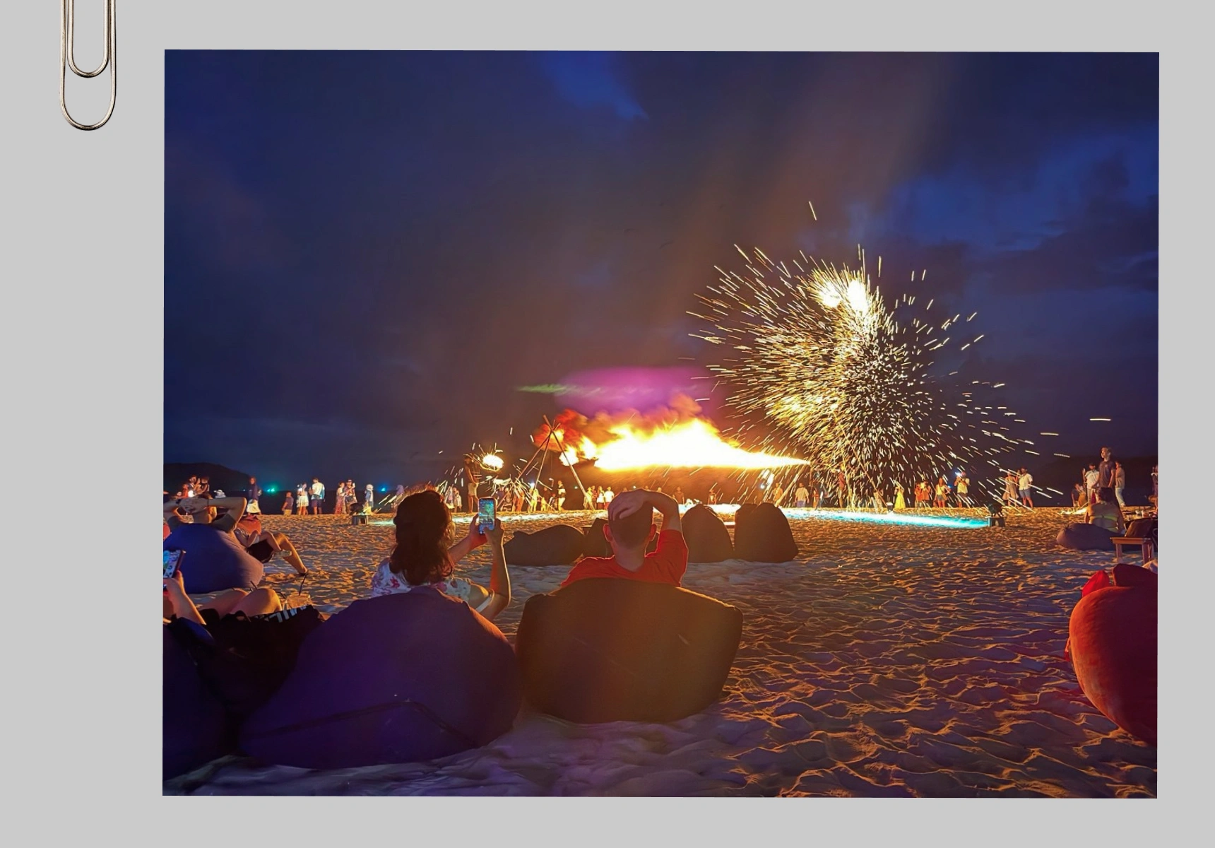 Quyosh botganidan keyin plyajda muntazam olovli shoular bo‘lib o‘tadi. Artistlar qum ustida chiqish qilishadi, atroflariga esa yumshoq kreslolar qo‘yiladi. Kirish bepul, lekin o‘tirib tomosha qilish uchun nimadir buyurtma qilish kerak: