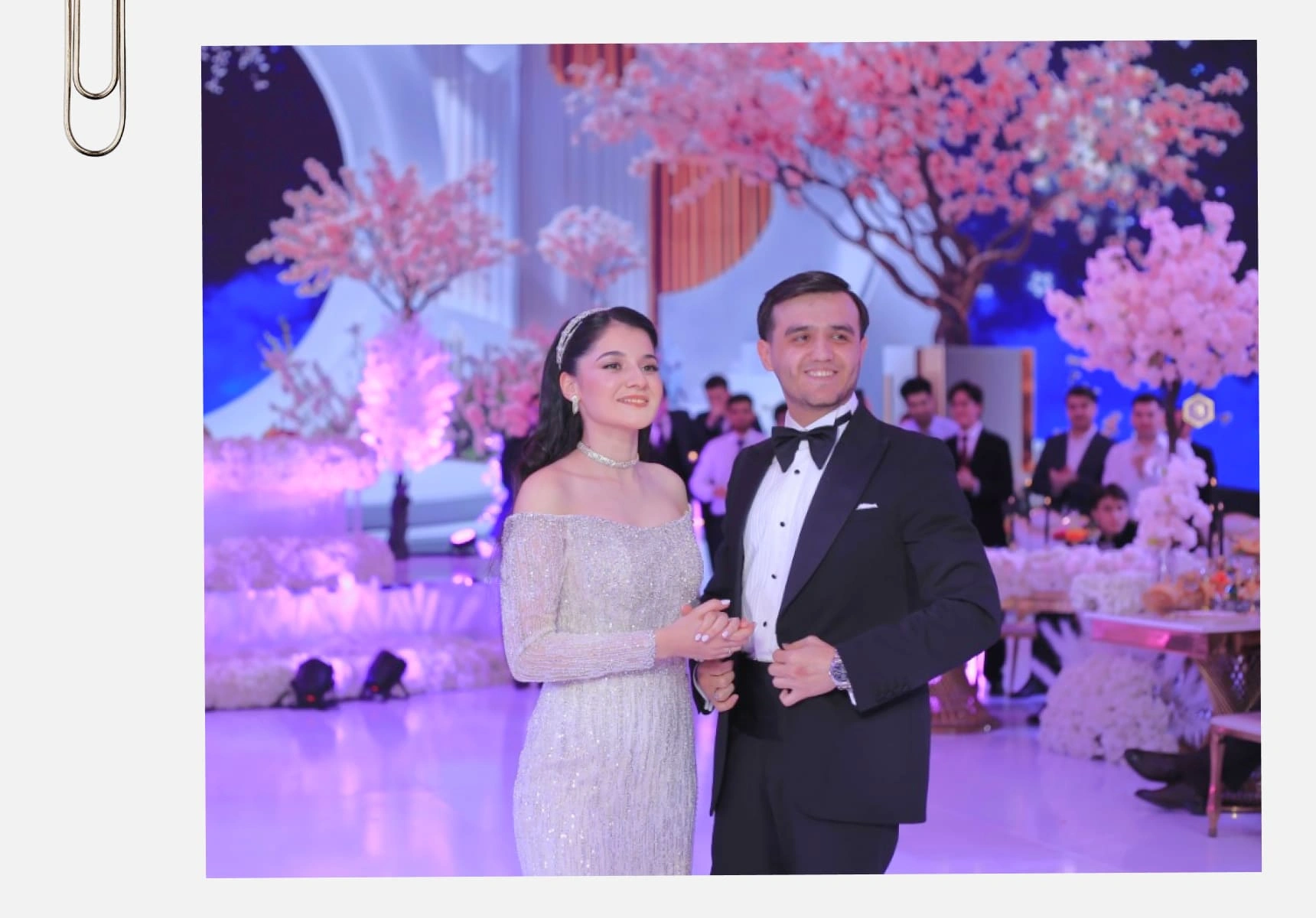 Fotosessiyadan keyin mehmonlarni kutib olish uchun banket zaliga bordik. To‘yga 210 kishi taklif qilingan, mehmonlarni joylashtirish bilan qarindoshlar shug‘ullanishdi. Qolgan barcha tashkiliy vazifalarni do‘stlarimiz o‘z zimmalariga olishdi. Tashkilotchi xizmati uchun alohida pul sarflamadik.