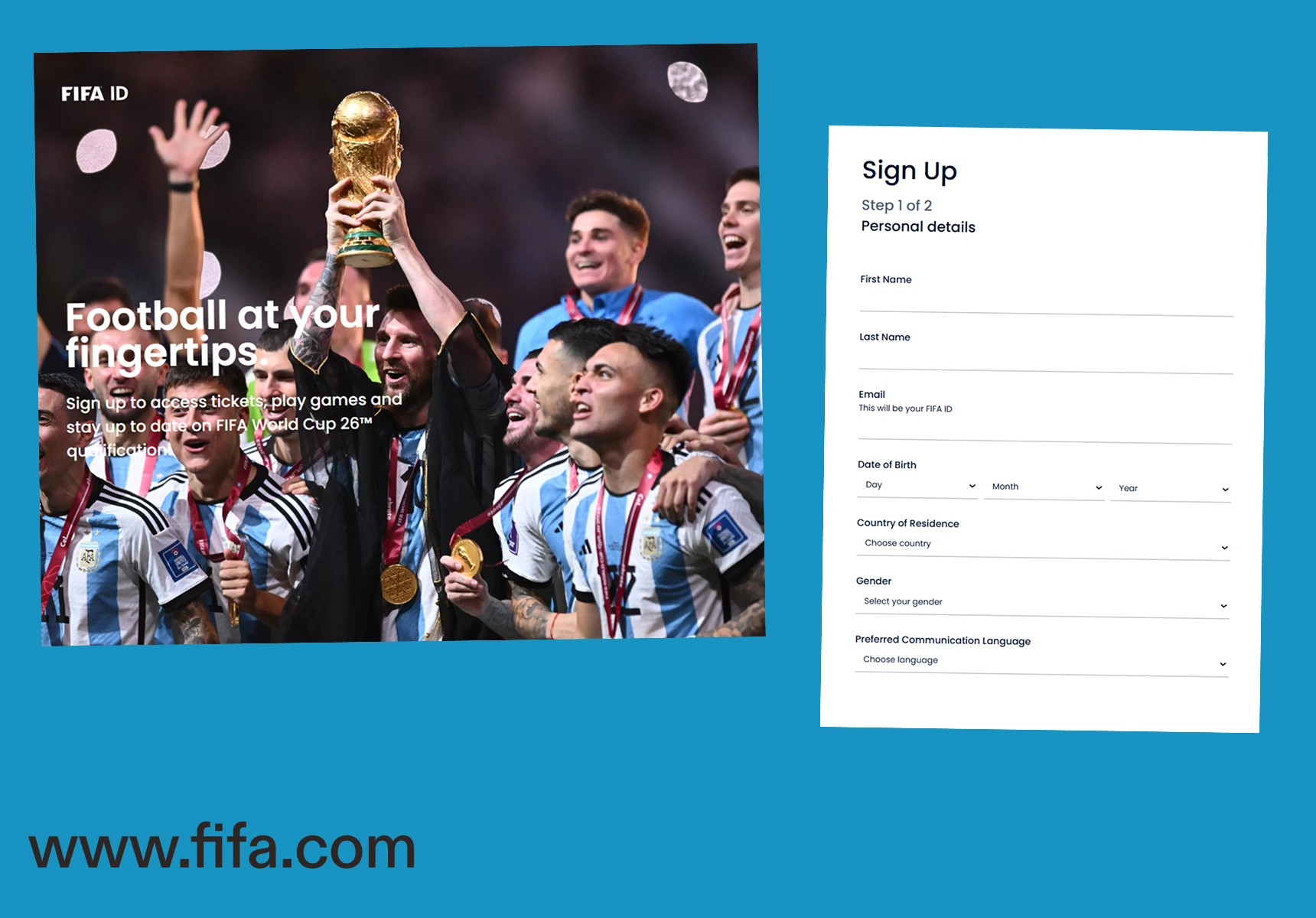 Avvalambor — FIFA rasmiy saytida ro‘yxatdan o‘tib, o‘z profilingiz ya’ni FIFA ID’ni yaratishingiz lozim. Ro‘yxatdan o‘tishda ism-sharif, tug‘ilgan sana, jins, elektron pochta, yashash manzili va tilni ko‘rsatishingiz kerak.