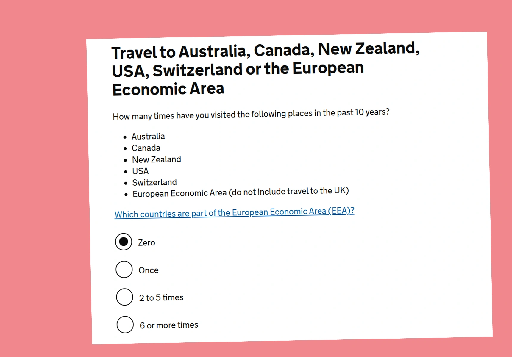Moliyaviy holatingiz haqida ham savollar bo‘ladi. Masalan, daromad va uning manbalari, oylik xarajatlar summasi hamda safar vaqtida qancha pul sarflashingiz haqida. Safarga bog‘liq savollar ham bor: sanalar va maqsad. Dam olishga borish uchun, “Tourism”ni tanlashingiz kerak. Sizdan rejalaringiz haqida — nimalarni ko‘rishni va qayerga borishingizni batafsil yozib berishingizni so‘rashadi.
